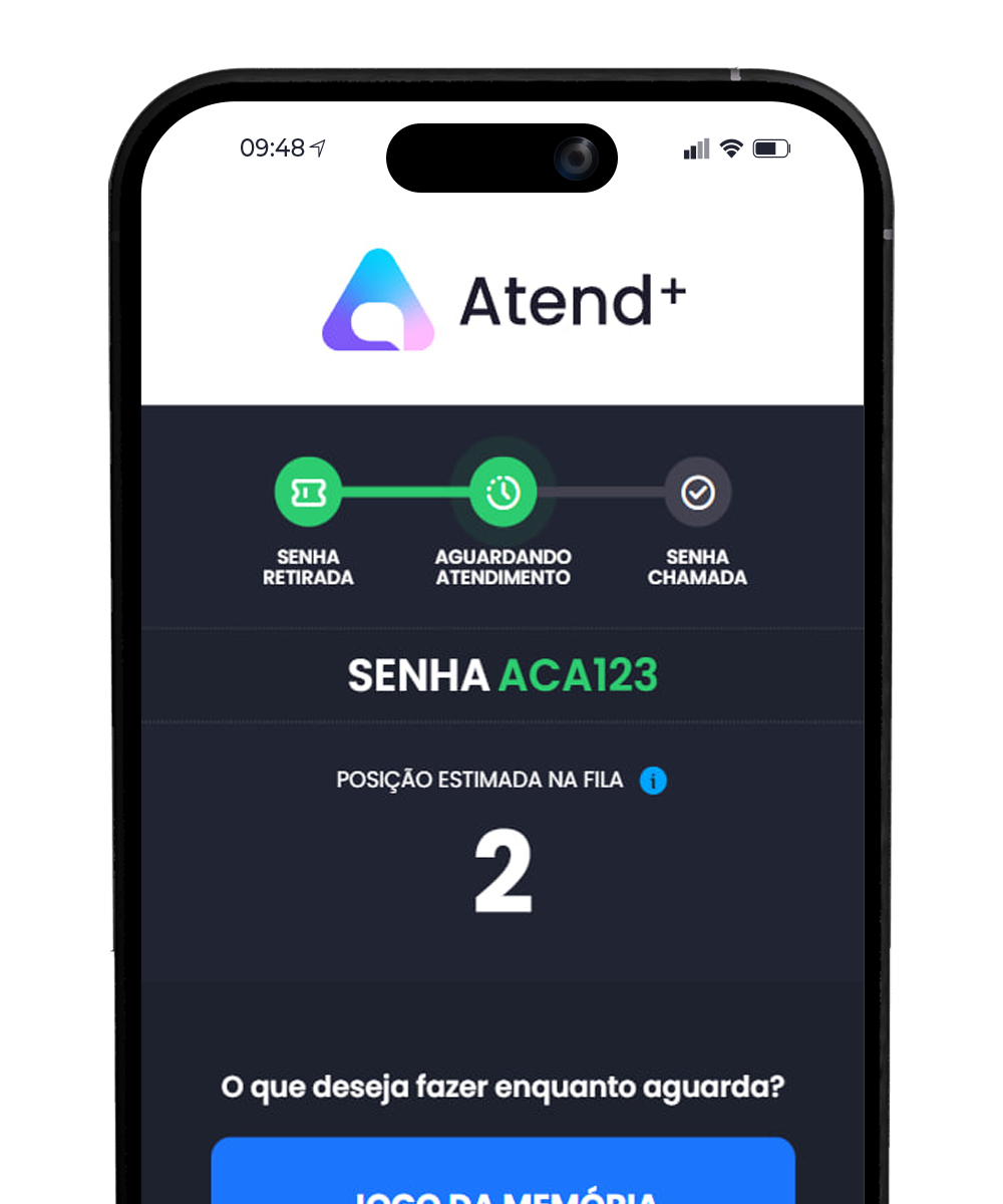 O Atend+ é uma plataforma de gestão de filas e atendimento que organiza de forma eficiente o fluxo de clientes, distribuindo senhas de forma inteligente e reduzindo o tempo de espera.